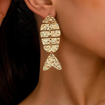 Vergoldete einfache Fisch tropfen ohrringe für Damen Trendy Edelstahl-Partys chmuck mit Diamant geschenk